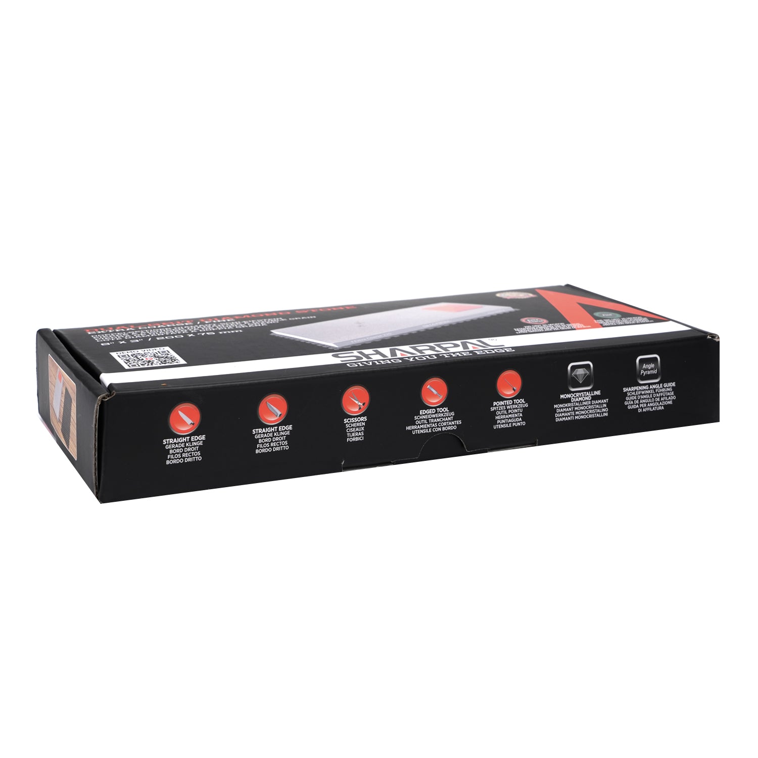 The SHARPAL 169H Dual-Grit Diamond Sharpening Stone is a powerful, professional-grade tool designed for fast, clean, and consistent sharpening performance. Unlike traditional whetstones that wear unevenly, require soaking, and create messy slurry, this diamond plate sharpens dry, stays flat, and handles even the hardest steels like CPM-series, M390, and Elmax with ease. Featuring a dual-sided design with extra-coarse 220 grit (60 micron) to restore heavily damaged edges and fine 600 grit (25 micron) to refine and enhance sharpness, it offers fast profiling and sharpening in one convenient solution. Its large 8" x 3" (200 mm x 75 mm) surface provides superior stability and angle control—ideal for larger knives and tools. Constructed with durable monocrystalline diamonds and enhanced by a Three-Times Electroplating Process, the stone maintains cutting power and longevity even under high pressure. SHARPAL’s MirrorFlat™ Technology ensures flatness within ±0.002 inch (0.05 mm), delivering precise blade contact for consistently sharp results. The included 4-angle guide (14°, 17°, 20°, 25°) helps maintain proper edge geometry, while the non-slip rubber pad offers added safety and surface protection.